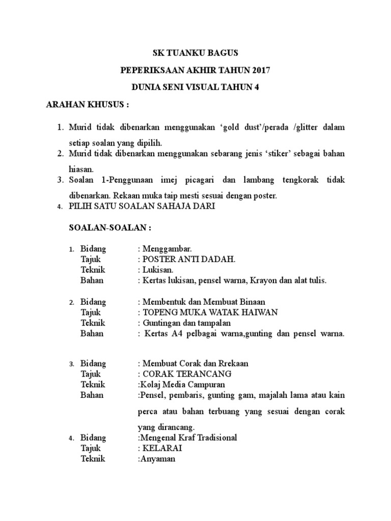 Ia akan diadakan secara TSOI pada 7 Sept 2021 10 Sept 2021 ini. Contoh soalan kerja kursus pendidikan seni visual spm 2022 jadual semakan upu from 1bp teknik catan oleh yusuf ghani siri topeng. Japar Jep menerbitkan Pendidikan Muzik Tingkatan 1 pada 2020-04-01.